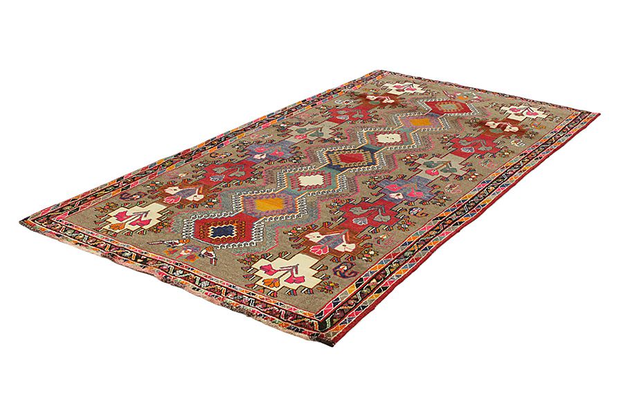 Qashqai Carpets : Qashqai carpets are woven by nomads who live in the mountainous areas of Southwest Persia, the provinces of Fars, Khuzestan, south of Isfahan and around the city Shiraz. Their carpets have a high knot density and a wide variety of designs, usually in deep red and blue colors. They weave carpets, Kilims and decorative textiles (ribbons, bags, etc.), which depict scenes from their lives with various representation of humans, animals, birds, trees and flowers. They also depict historical monuments, mostly from Persepolis.